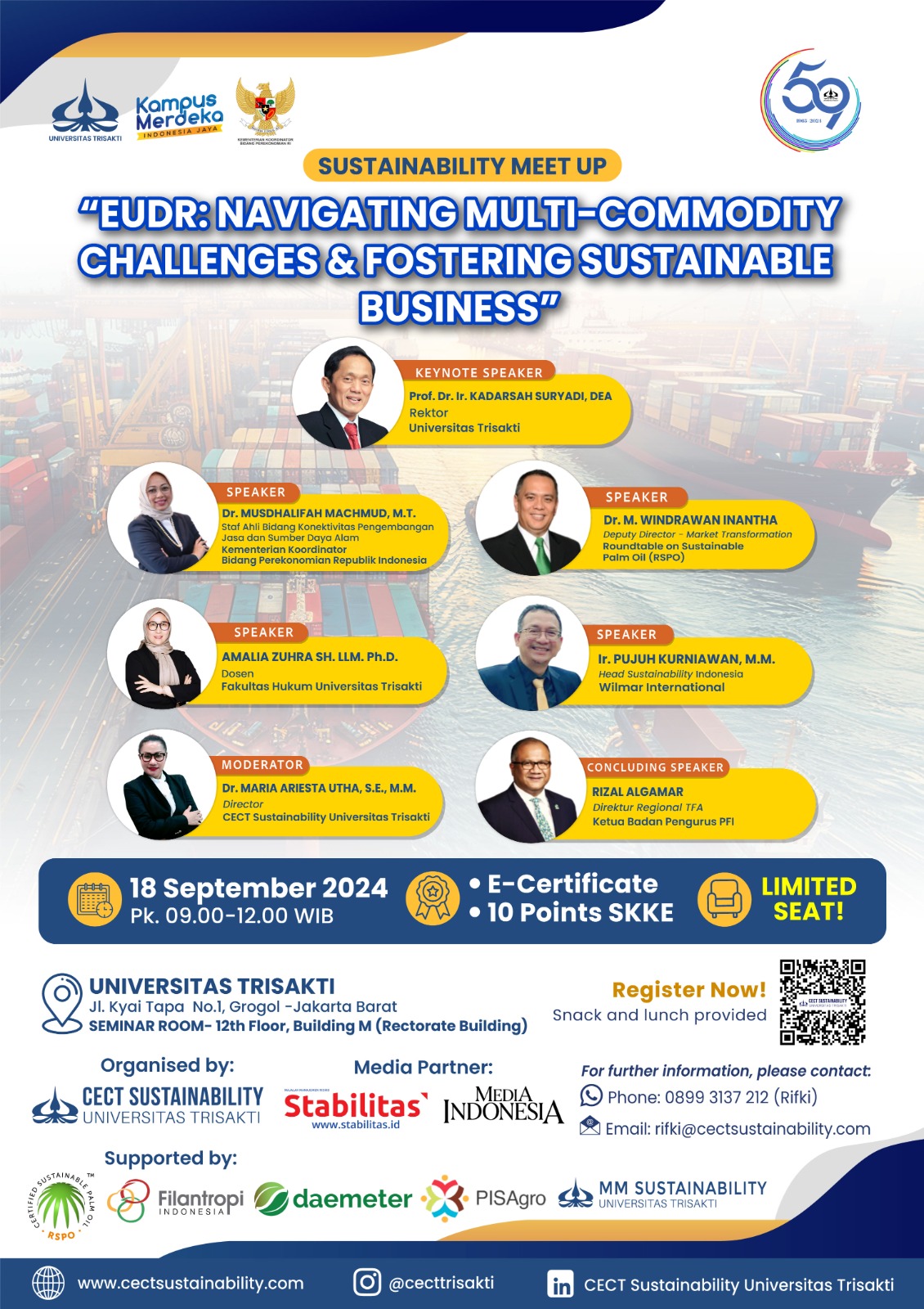 Good afternoon ladies and gentlemen, MM FEB students of Trisakti University together we invite you to attend the Sustainability Meet Up event which will be held on Wednesday, September 18, 2024 at 09.00-12.00 WIB at the Grogol campus building M lt. 12 .