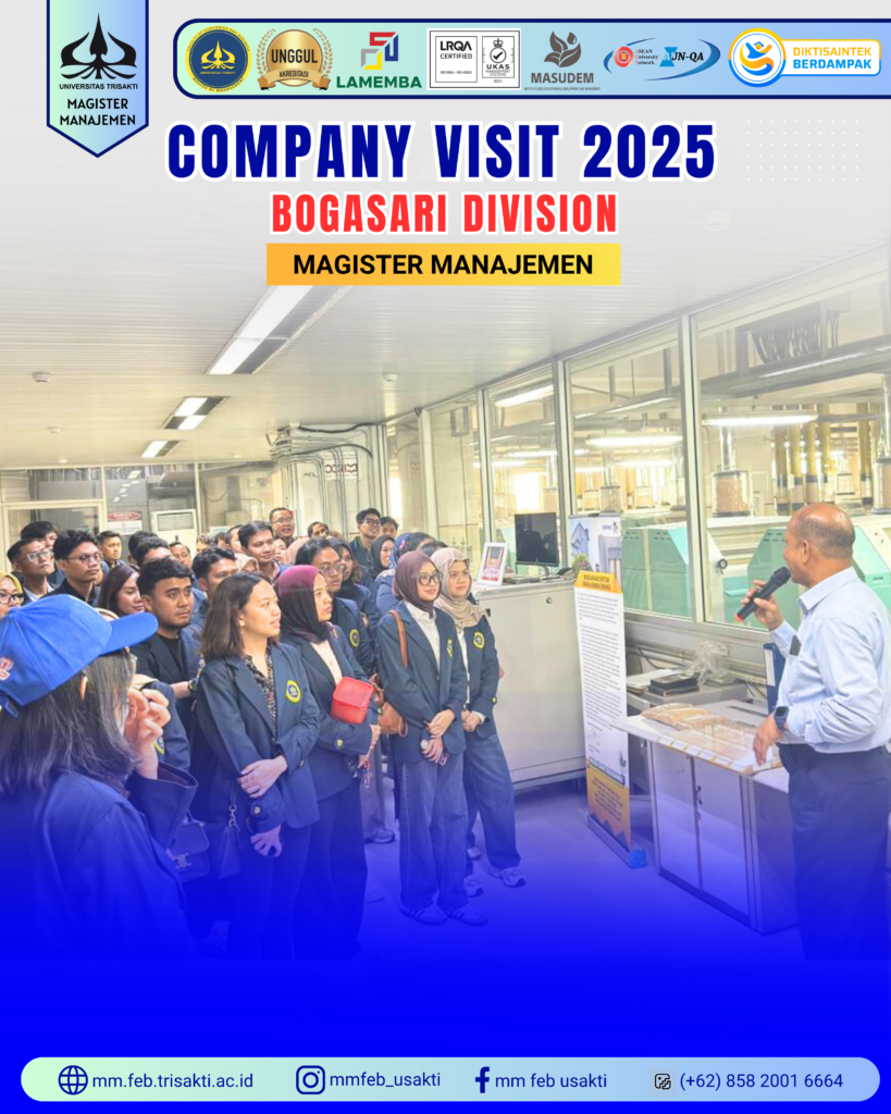 In order to increase students’ insight and experience regarding the real application of industrial management, the Trisakti University Master of Management Study Program held a Company Visit activity to PT Indofood Sukses Makmur Tbk – Bogasari Division.